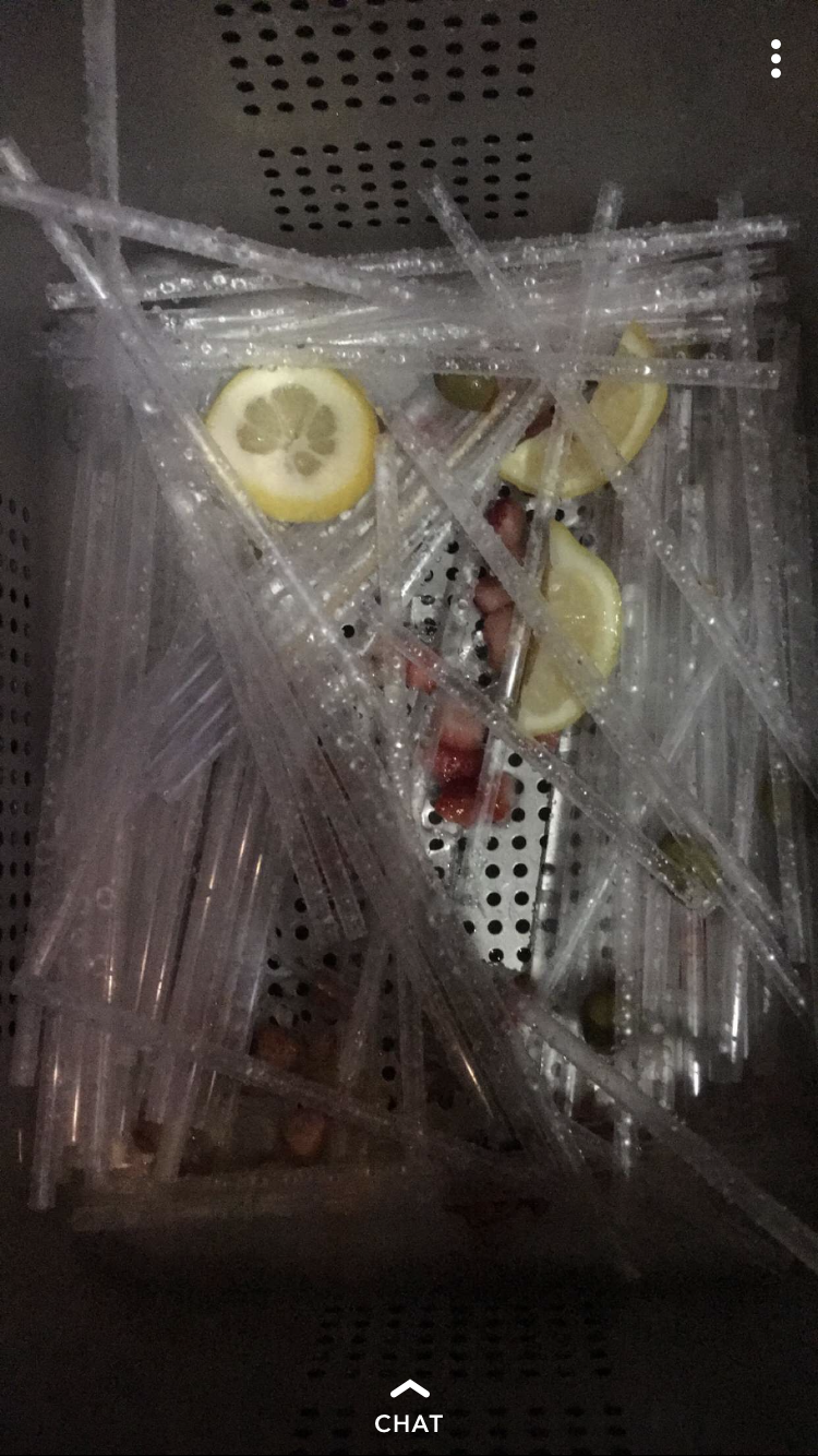 Now this does not look like many straws but this was just a slow night. On busy nights we go through WAY more and to me that is just crazy how many straws one restaurant can go through. This really opened up my eyes and made me really want to stay committed to using re-usable straws and cups instead of single use to try and reduce my carbon footprint.